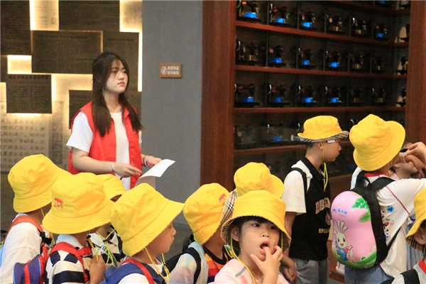 实践团由旅游管理、数字化酒店管理与运营等专业学生组成,依靠扎实的专业知识和过硬的专业本领,团队成员前往中国乡镇企业博物馆,开展馆校联动行动,深度参与博物馆“红色寻访”主题活动。实践团成员带领70名少年儿童观看展柜内历经岁月洗礼的珍贵文物,了解在“四千四万”精神引领下无锡乡镇企业异军突起的成长史和源远流长的工商业发展史,陪同完成“探访初心之旅”研学打卡任务,开启一段听、看、做合一的趣味红色教育之旅。