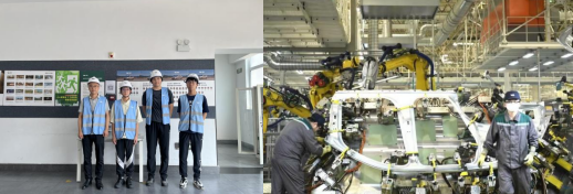 团队成员在工作人员的带领下参观了新能源汽车生产线,其自动化程度高达95%以上,从精准有力的冲压,到细腻入微的焊接,再到精湛的喷漆工艺与匠心独运的总装,四大工艺环环相扣,在理想自研的Li-Mos系统与连山预警系统协同保障下,有条不紊的进行。