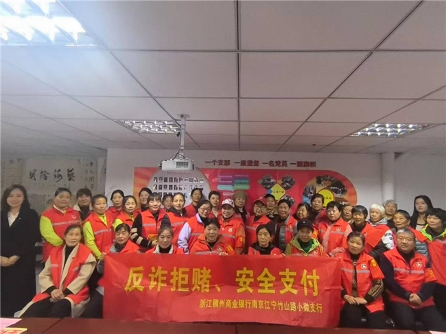 活动伊始,社工向平安志愿者作重要节点值岗动员,强调国家公祭日期间维稳的重要性,并对志愿者长期以来的无私奉献表示感谢。浙江稠州银行竹山路支行周劲婧通过发放宣传手册、案例讲解、互动问答等形式,向志愿者普及常见金融诈骗手段及防范技巧,重点针对老年人群体强调“不轻信、不转账、多核实”的防诈原则,银行工作人员还向平安志愿者发放了暖心大礼包,助力平安值守活动。