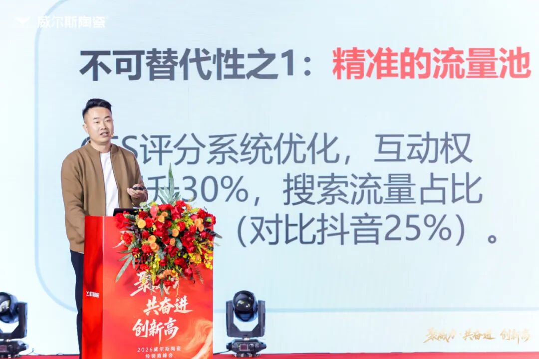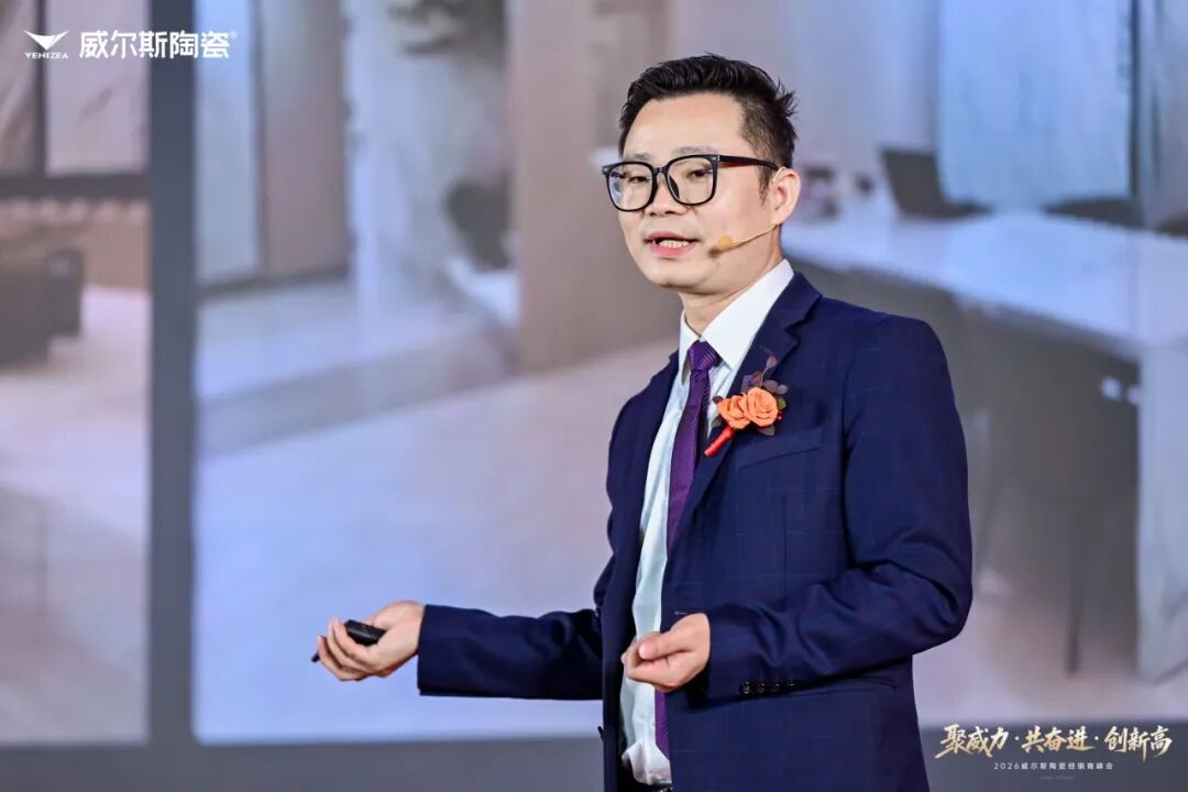 这一理念在下午的市场战略环节得到进一步深化与落地。威尔斯陶瓷销售副总经理兼市场总监吕建伟先生发布了题为《征程与未来》的全新市场规划。他系统阐述了品牌如何整合资源,通过线上线下融合、内容营销深耕、终端赋能升级等组合策略,构建全域营销生态,驱动市场增长。