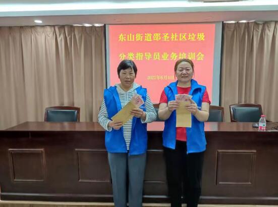 自《南京市生活垃圾分类管理条例》实施以来,至今已过半年,现场,宣讲员围绕垃圾分类实施以来存在的共性问题和个性问题进行了讲解,提醒垃圾分类督导员在工作中注意以下问题,将垃圾分类工作做得更细更实更好。同时,为了检验垃圾分类管理成效,提升垃圾分类指导员参与工作的积极性,会上,邵圣社区对五月份在垃圾分类工作中恪尽职守的10名社区厢房指导员进行表彰,并为他们送上了奖金,表扬他们在工作中的付出,鼓励他们继续保持工作激情,以更加饱满的热情参与垃圾分类工作。