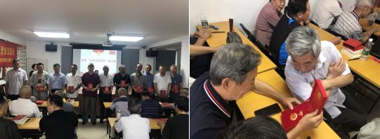 接着,为社区党龄在50年老党员颁发了“光荣在党50年”纪念章,并对老党员们多年在组织工作中所作出的贡献表达了崇高敬意。当沉甸甸的纪念章,递到老党员面前时,老党员激动的表示:“这是对我们一种肯定,也是一种赞扬,更是一种荣誉。”在台下,老党员高兴的拿着纪念章,看来看去,神情十分激动。