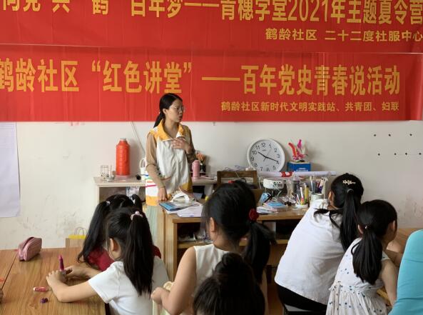 为了指引青少年儿童从小学党史,永远跟党走,引导孩子们说出对党的心里话,近日,南京市江宁区汤山街道鹤龄社区共青团和辖区儿童一起开展“红色课堂”——百年党史青春说活动,邀请年轻团员给孩子们讲红色故事。