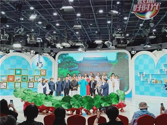 歌舞表演《江山》和诗朗诵《长城》用赞美的腔调,述说着党建下的美丽中国建设,秀丽江山如画般在观众心头展开。