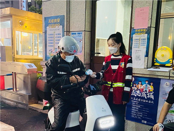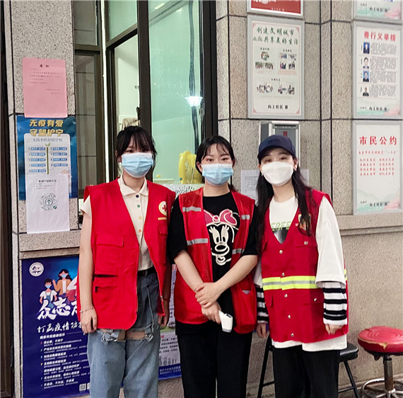 说起报名当抗疫志愿者,嫂子吴雅文因疫情,她工作的机构暂停了线下培训业务,两个妹妹也因暑假放假在家。听家中长辈说起招募志愿者的事,姐妹三人一拍即合,一起报了名,第二天就到志愿服务岗位上报到了。从前期的核酸检测居民信息登记、在辖区内张贴防疫宣传画到门岗看苏康码、测体温,她们都与社区工作人员在一起,从未有一天缺席。