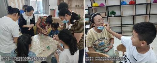 在手工月饼环节中,志愿者拿出准备好的材料和道具,向大家讲解了做月饼的流程,引导在场的家长和孩子们围绕在桌子前,分工开始制作手工月饼。家长们和面、捏出饼皮,孩子们在里面包上自己喜欢的馅料,父母子女齐上阵,用模具按压出月饼的形状,将香喷喷的月饼烤制出炉,共同分享了这份亲情的甜蜜。