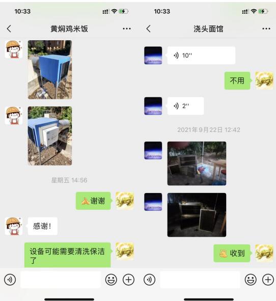 社区通过店家发送的油烟净化器、固废危废存放点、台账等照片对其环保工作进行评估,对于工作欠缺的店家会上门督促。