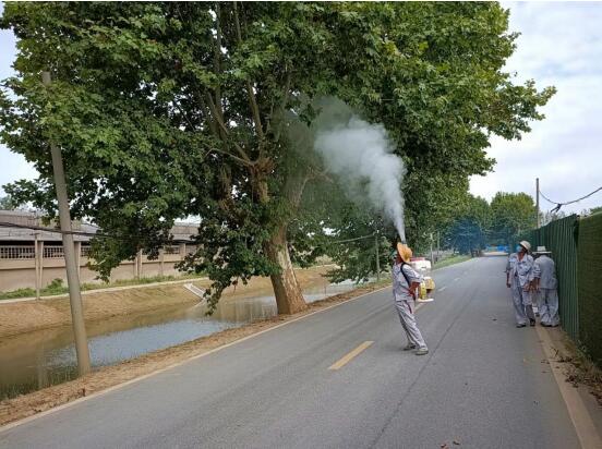 美国白蛾适应性强、繁殖数量多、传播途径广,严重危害着树木、果树、农作物的安全,同时也给周边居民的日常生活和交通出行带来着一定的影响。城治公众委员对红梅线周围的树木进行仔细观察,发现了不少树木上出现了美国白蛾的幼虫,便避开人流高峰期,利用街道行人少、车辆少的时间,带着农林人员来到现场,用专门的消杀设备进行喷射。