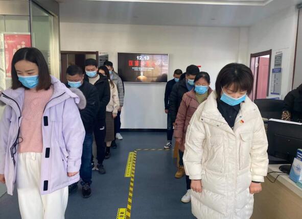 十点零一分,南京全城鸣响防空警报,为南京大屠杀遇难同胞默哀,全体人员集体站立默哀缅怀,深切寄托对30多万同胞的无限哀思。社区负责人呼吁大家勿忘国耻、珍爱和平、振兴中华。“我们要牢记国家曾经遭受过的苦难,缅怀逝者,不忘使命、奋发有为,为实现中华民族的伟大复兴作出自己的贡献。”面对一个个触目惊心的数字,面对响彻城市上空的警报声,社区工作人员深有感触地说道。