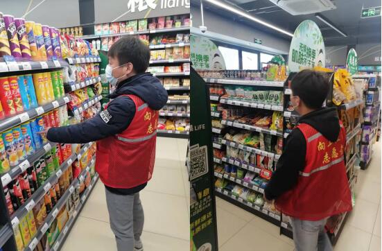 12月15日,南京市栖霞区马群街道向上社区对辖区内的小型商超、便利店开展食品安全检查行动,进一步加强食品安全工作,确保广大居民冬季饮食安全。