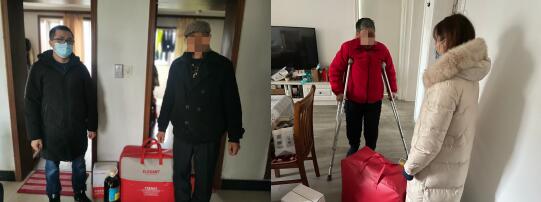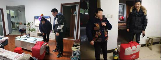 社区两委、工作人员、网格员分工合作,分别走访辖区内的高龄老人、残疾人以及困难家庭,为他们送去慰问金、大米、食用油、被子、牛奶等生活物资。社区工作人员与走访家庭人员亲切交谈,了解他们日常生活情况。残疾人周阿姨说到,“感谢政府对我们家的帮扶,我们老两口视力都不好,日常生活还多谢社区帮助,让我们感受到了党和政府对我们的关心,真的太感谢你们了。”