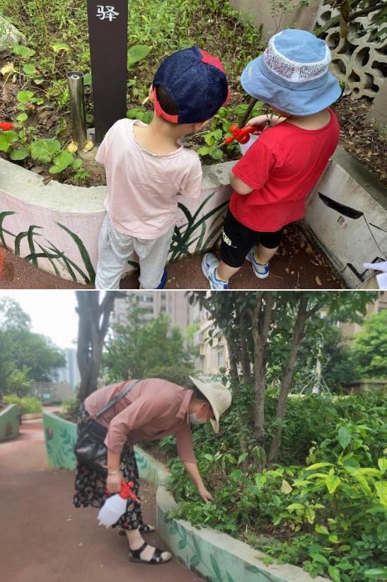 尽管花园早已建成完毕,但日常维护少不了。除了物业公司的日常管理,蛇盘社区也时常组织志愿者和小区居民在这里共同养护大家的花园。近日,蛇盘社区组织了一场“快乐童行 幸福家园”的小花园养护志愿活动。在志愿者的带领下,孩子和家长们一起来到“微花园”,志愿者为每组家庭发放工具,孩子们热情高涨,捧着喷壶穿梭于葱茏花木之间,一边为植物浇水,一边听社区志愿者讲解植物知识,在活动中不仅认识了蔷薇、紫藤等植物,也牢牢记住了浇水要定位于植物根部、土壤要浇透等要领。家长们有些作为社区的老牌志愿者早已轻车熟路,在为花草补充水分的同时,也自发拔除花坛中生长的杂草,让花草茁壮生长,居民张阿姨高兴地说,“从来没有想过,通过这个‘微幸福’我们真的能够把自己的梦想花园打造出来,太有成就感了!”