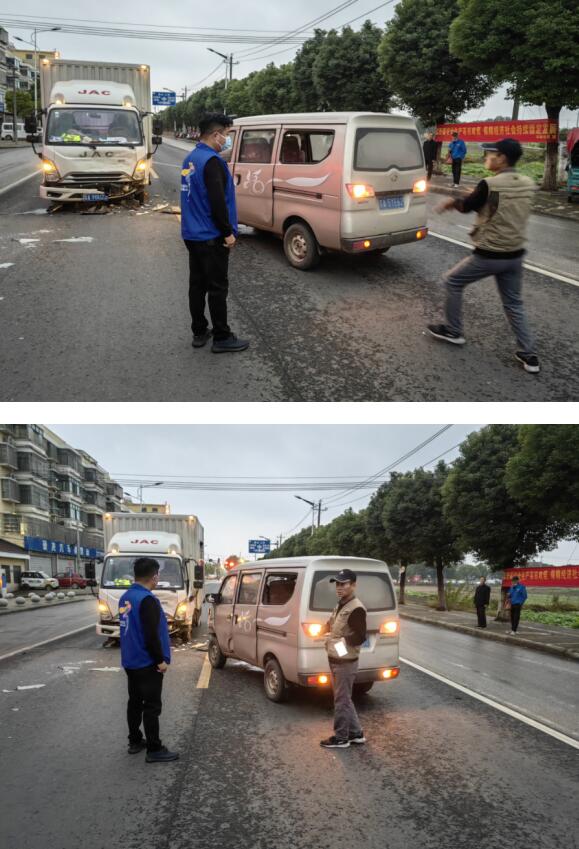由于事故发生在主干道路口,车流量较大,严重影响过往车辆正常运行。为避免二次事故发生,在等待交警的过程中,网格员耐心指挥群众不要围观,保持道路的畅通,保护事故现场不被破坏。在维持交通秩序的同时,网格员积极了解了事故情况,耐心与事故双方沟通,稳定双方的情绪,化解双方的矛盾。交警到场后,网格员详细与交警对接了事故现场情况,并协助交警研究制定化解方案。经过网格员和交警的协作配合和努力调解,本次交通事故得到了良好化解,网格员对事故现场的迅速处理和对现场交通秩序的安全维护,获得了交警和过往行人的不断好评。
