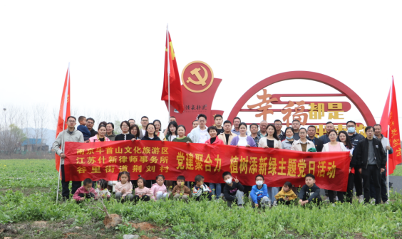 又是一年春来到,植树添绿正当时。在第45个植树节和“315”消费者权益保护日到来之际,3月11日,江宁区谷里街道荆刘村联合南京牛首山文化旅游区、江苏什新律师事务所开展“党建聚合力 植树添新绿”主题党日活动,倡导“环境就是民生,青山就是美丽,蓝天也是幸福”的生态文明理念。