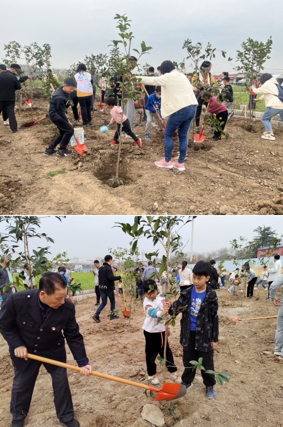 在植树环节,大家三五成群,相互协作,从挖坑整地、栽植树苗,到扶正、压实、浇水施肥,现场呈现一派热闹繁忙的景象。一棵棵新栽的树苗含翠而立,展现出春的生机。栽下同心树,共植一片绿。特别是小朋友们喜笑颜开,在植树活动中增强了团队意识,感受到劳动带来的快乐。