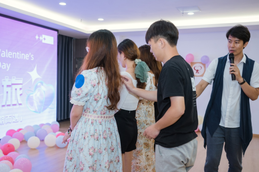“玫瑰之旅—魔术表演+互动教学”游戏和“爱之初合作”游戏接踵而至。通过团队合作,大家互相配合,共同解决问题,进一步促使彼此之间擦出了火花。