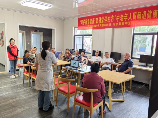 夏季是胃肠道疾病的高发季节,在当今社会快节奏的生活中,更多的人开始不规律的饮食或者食用不干净的食物,种种习惯不断破坏着人类胃肠道健康。为进一步加强南京市江宁区汤山街道建设村中老年人对的胃肠道健康认识,提高村民生活质量,加强其对胃肠疾病的关注,做到早预防、早治疗,充分发挥胃肠病专业诊疗机构作用。建设村新时代文明实践站联合南京肛泰中医医院开展我为群众办实事“呵护肠胃健康,幸福常伴左右”中老年人胃肠道健康知识科普活动。
