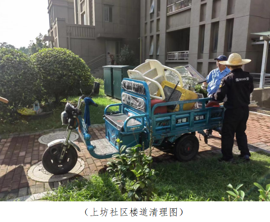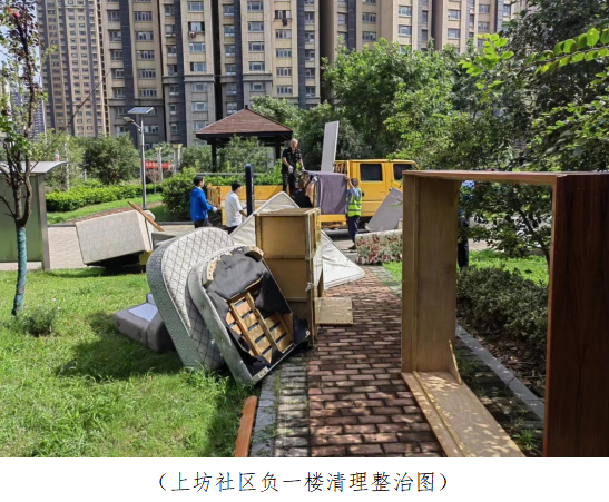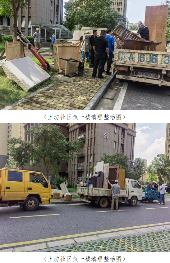 在历时11天,每天出动工作人员25人,调用两辆垃圾货物运输车,共清理杂物垃圾约60车后,上坊新城小区负一楼全面清理整治完毕,焕然一新。