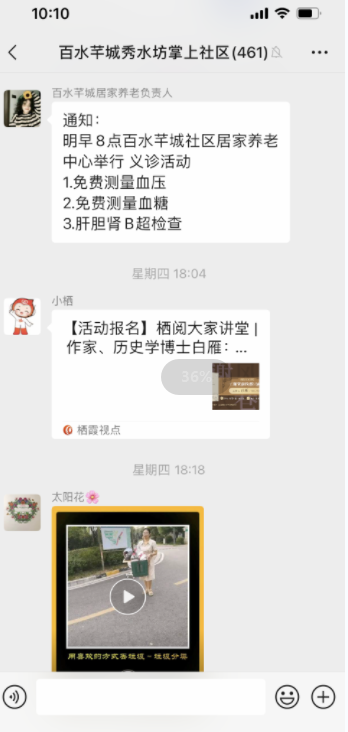 义诊前,百水芊城社区居家养老服务站人员通过“掌上云”微信群、电话、入户等宣传方式提前广泛告知,提高居民的知晓度,传达体检时间、地点和注意事项,发动老年居民积极参与到免费体检活动中来。