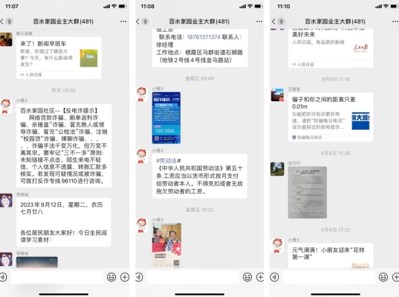 截止目前,百水家园社区“反诈联盟”在辖区业主群及网格群内转发1000余条反诈视频及警情通报,大大降低了案件发生率。