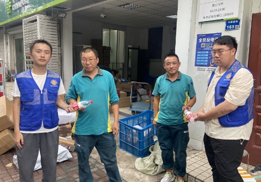 9月中旬,果场社区联合工会与社区“宁小蜂”驿站组织工作人员、“齐益果”积分志愿者联合开展关注户外工作者、新业态群体的“送一瓶水”行动,给忙碌的户外职工送达一份关怀。