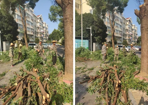 秋日高照,百水家园社区民兵连联合多部门开展修树行动