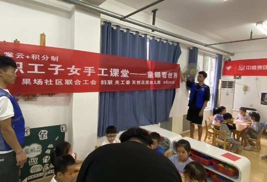 2023年9月20日,栖霞区马群街道果场社区联合工会、妇联、关工委依托“齐益果”掌云+积分制工作机制,组织辖区职工子女,在社区新时代文明实践站开展“童眼看世界”主题手工课堂志愿活动,关心关爱辖区职工子女,共建文明和谐社区文化。