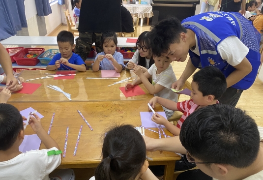 “我学会了折千纸鹤,太开心了!”现场有职工子女开心地说道。大家在志愿者耐心细致地教学下,小手忙活得不亦乐乎。手工制作不仅可以锻炼小朋友们的动手能力,创造思维,也可以增强他们的耐心,集中注意力,对他们日后的学习生活有着潜移默化的作用。