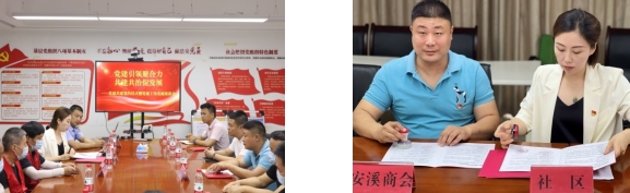 近期,王子楼社区党总支联合安溪商会党支部共同开展了以“党建引领聚合力 共治共建促发展”为主题的支部共建活动。双方就如何做好党建工作与业务工作进行讨论和交流,分享双方党建工作开展情况和具体措施,表示将用好“同心向党”党建共建机制,创新思路、丰富方法,推动双方党建与业务同步提升。双方党支部代表签订了党建结对共建协议,表示今后双方党组织将定期交流党建工作经验,共享党建工作信息,联动开展系列学习活动,开展志愿结对帮扶、基层社会治理等党建工作,积极响应南京市工商联党委号召,开展联建共建,充分发挥各自优势,紧紧围绕“学习共进、党建共建、资源共享、公益共办”内容开展活动。