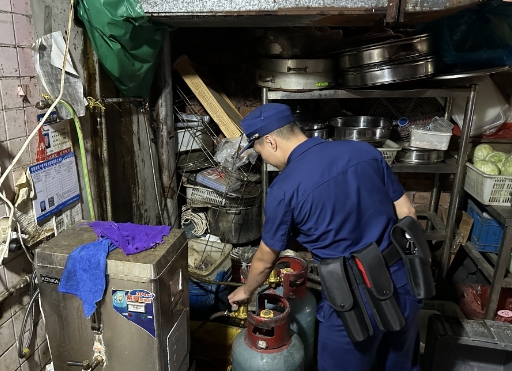 在马群新街餐饮店中,工作人员对餐饮店后厨的燃气使用情况进行了记录,与燃气公司记录进行比对验查,对燃气报警器、阀门、软管等进行了现场检查。社区安全巡查员向商户进行了燃气安全及消防安全的宣传,了解商户当前的保障措施,及相关困难。