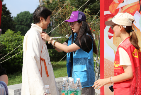 在汉服体验区,同样也有着大学生志愿者在为大家介绍传统服饰。汉服承载了中国染织绣等杰出的工艺和美学,传承了三十多项中国非物质文化遗产,讲解的过程中吸引来了一批居民认真听讲,大家纷纷表示学到了很多汉服的知识,最后大家都亲自体验试穿了汉服。