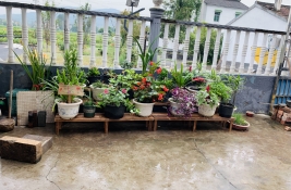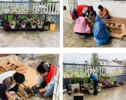 最后是给英大妈家改造一下花架,英大妈家花很多,但是花总是放的乱七八糟的没有层次感,这次在社工和志愿者的帮助下终于将花给放整齐了,顿时院子也显的大了很多。