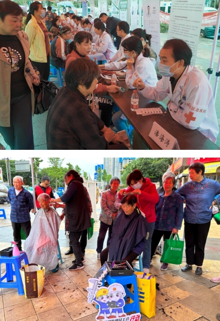 现场还有名医义诊、理发、缝纫、磨刀等服务项目。名医坐诊片区,前来就诊的居民络绎不绝,有的还排起了长龙。一位阿姨感慨地说道,“这些医生平时挂号都要靠抢,现在来到家门口坐诊,真的是方便了。”还有的高龄老人表示,自己腿脚不便,也不想总是麻烦儿女,今天正好有机会来跟医生问诊,都是专家名医,信得过。