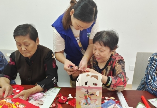 本次活动的主题是巧手做花灯,工作人员为老年人准备了各种各样的材料和工具,如彩纸、剪刀、胶水等,并详细讲解了花灯的制作过程。老年人们认真听取了工作人员的指导,按照自己的想法和创意开始制作花灯。在现场,有的老人在认真制作自己的花灯,有的老人则与其他人交流经验,相互帮助,气氛十分热烈。