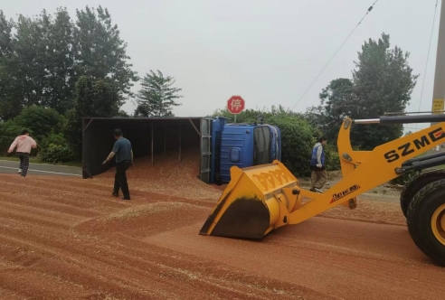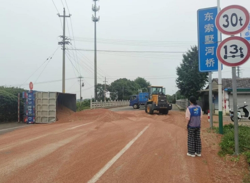 新跃社区:货车侧翻遇危险 网格守护保安全