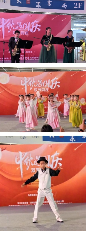 本次活动,来自太阳城小学,花港一小,东郊小学,天悦花园幼儿园的孩子们在舞台上大放异彩,含着饱满的热情为祖国母亲庆生,为团圆之夜喝彩。