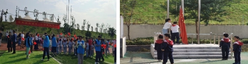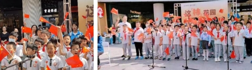 升旗仪式结束后,活动进入了尾声,大家来到了花园城。小朋友和志愿者排好队列,手举红旗,一起合唱了激动人心的歌曲——《歌唱祖国》。每个人都心潮澎湃,热血沸腾,展现了当代学子朝气蓬勃的精神面貌和滚烫的赤子心,活动结束。