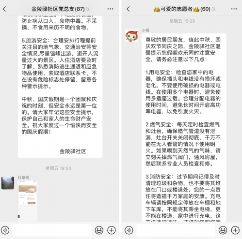 掌云宣传“全渗透”。金陵驿社区充分利用掌上云网格群、微信公众号等新媒体,每日不定时推送节日安全知识,扩大安全宣传的覆盖率和知晓率。