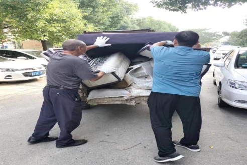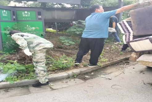 在清理活动开始后,新时代文明实践站志愿者和物业工作人员分成了两组,一组清理馨康苑小区的杂物,一组清理福康苑小区内卫生死角。志愿者将小区内的杂物以及垃圾站内的卫生死角等进行了一一清理。清理中,工作人员将废弃的沙发柜子等居民丢弃的杂物以及垃圾站附近的垃圾全部带走了,经过志愿者和物业工作人员的共同努力,本次美化家园卫生整治总共清理了6车垃圾。