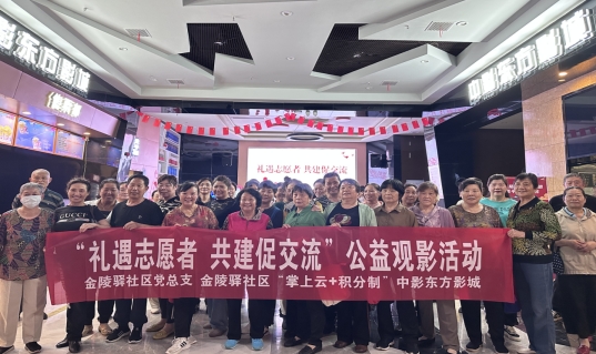 近日,金陵驿社区联合党建共建单位、掌云+积分制联盟商户中影东方影城开展“礼遇志愿者 共建促交流 ”公益观影活动。