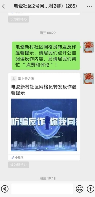 电瓷新村社区掌上云助力 防范电信诈骗 构筑安全防护墙