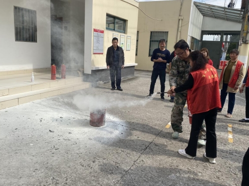 最后一项活动是消防器材使用演练。 活动中,安全员担任指导员,向居民们展示了如何正确使用灭火器、灭火毯等消防器材。指导员生动演示了灭火器的使用姿势、操作注意事项和灭火器的喷射范围等关键内容,并鼓励居民们亲自操作,以提高其使用消防器材的技巧和应对火灾的能力。