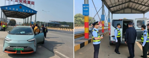 “您好,请停车接受检查。”现场工作人员向来车敬礼示意。江宁街道海宏查报站位于南京江宁与安徽马鞍山交界区域,此次多部门联合检查点设在该处的江宁公安检查站内,经与马鞍山交警、路政提前沟通,在宁马省界两点一线协同配合,将来宁车辆引导至专用通道接受我方检查,有力保障了专项行动顺利进展并取得明显实效。