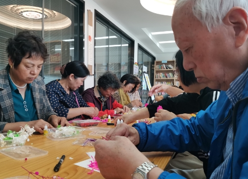 手工制作环节,志愿者先给居民朋友们介绍了DIY干花相框的制作所需材料,并演示了如何粘贴制作。老人们在志愿者的指导下,发挥自己的创意,很快各种精美的干花相框便完成了。