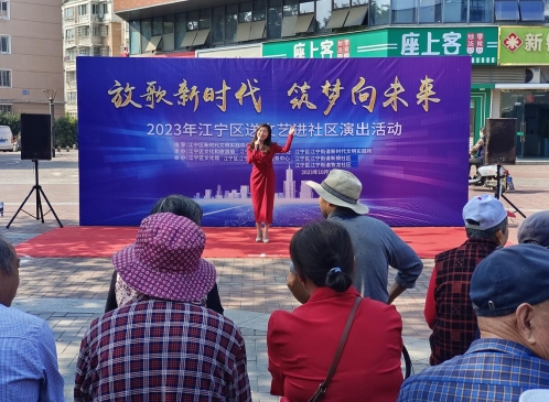 为深入学习贯彻党的二十大精神和习近平总书记关于公共文化建设重要论述精神,深入推进文化惠民活动,丰富和活跃群众文化生活,满足人民群众精神文化需求,近日,由江宁区新时代文明实践中心指导,江宁区文化和旅游局、江宁区江宁街道办事处、江宁区江宁街道新时代文明实践所承办,江宁区文化馆、江宁区江宁街道文体服务中心、江宁街道新铜社区、江宁街道牧龙社区协办的“放歌新时代 筑梦向未来”——2023年江宁区送文艺进社区演出活动在在地秀路商业广场举行。
