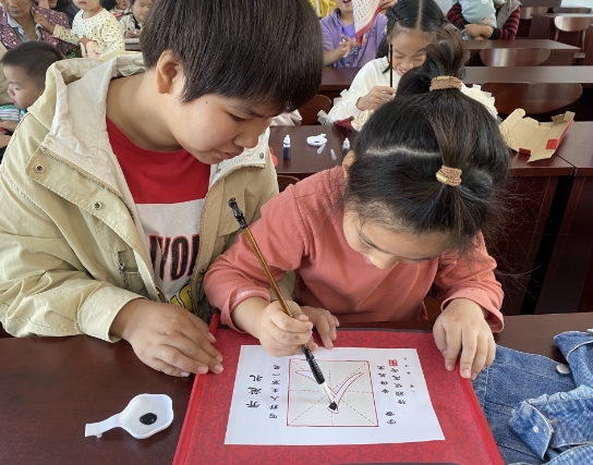 为了让参与者更好地感受到书法的艺术魅力,活动最后还组织了一场书法作品创作环节。志愿者们引导着孩子们自主完成自己的书法作品,在一撇一捺中感受到了书法艺术的独特魅力。这不仅增加了孩子们对书法的喜爱,也培养了他们对艺术的审美能力。
