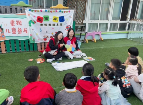 活动分为三个环节,首先是故事会前的热身活动。小朋友们在欢快的音乐中活动身体,通过各种有趣的游戏迎接即将展开的精彩故事。