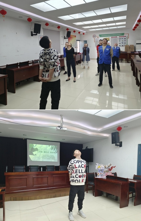 活动中,李老师先根据工会会员的具体工作,传授了站姿,坐姿,特别是接待群众时的一些正确肢体动作。接着,结合工会会员们长期伏案工作,由腰肌劳损及颈椎方面的问题,现场手把手地教起工会会员做起工间操,伴随着轻柔缓慢地音乐,大家缓缓的抬头,拉长脖颈,左右拉伸,“咔擦咔嚓”的关节声也随之而响,大家相视一笑。现场笑声不断,挥洒汗水却享受其中。最后,在李老师的耐心教导下,大家很快就练成了一套完整的工间操,不仅身体感到无比轻松,而且心情也无比顺畅。工会会员们又精神抖擞地迅速投入了工作中。