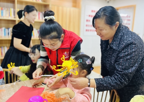 为了让孩子们更好地理解和记忆重阳节的习俗,社区志愿者们还组织了一个亲子手工活动。他们教孩子们制作重阳节的特色手捧花。孩子们用五彩的彩纸和绿色的草绳,将一束美丽的花束编织成形。志愿者们耐心地指导孩子们完成手工活动,并鼓励他们发挥创意,使每个手捧花都独一无二。