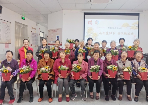 “遥知兄弟登高处,遍插茱萸少一人”, 重阳节是中国的传统节日,重阳插花的传统由来已久,具有祭祀、祈福、辟邪、延寿的意义。同时,插花也可以陶冶身心,增加手部的灵活性。